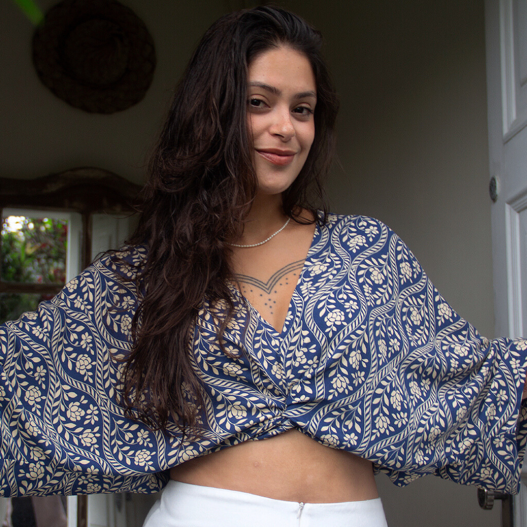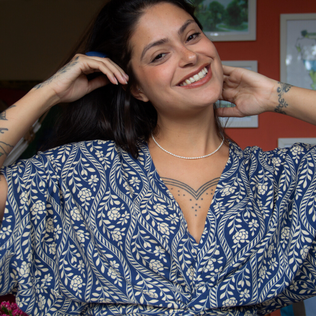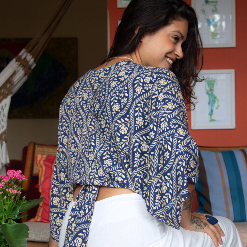 Versátil e encantadora, pode ser usada de diferentes formas: com amarrações criativas, sobreposição ou como peça única.