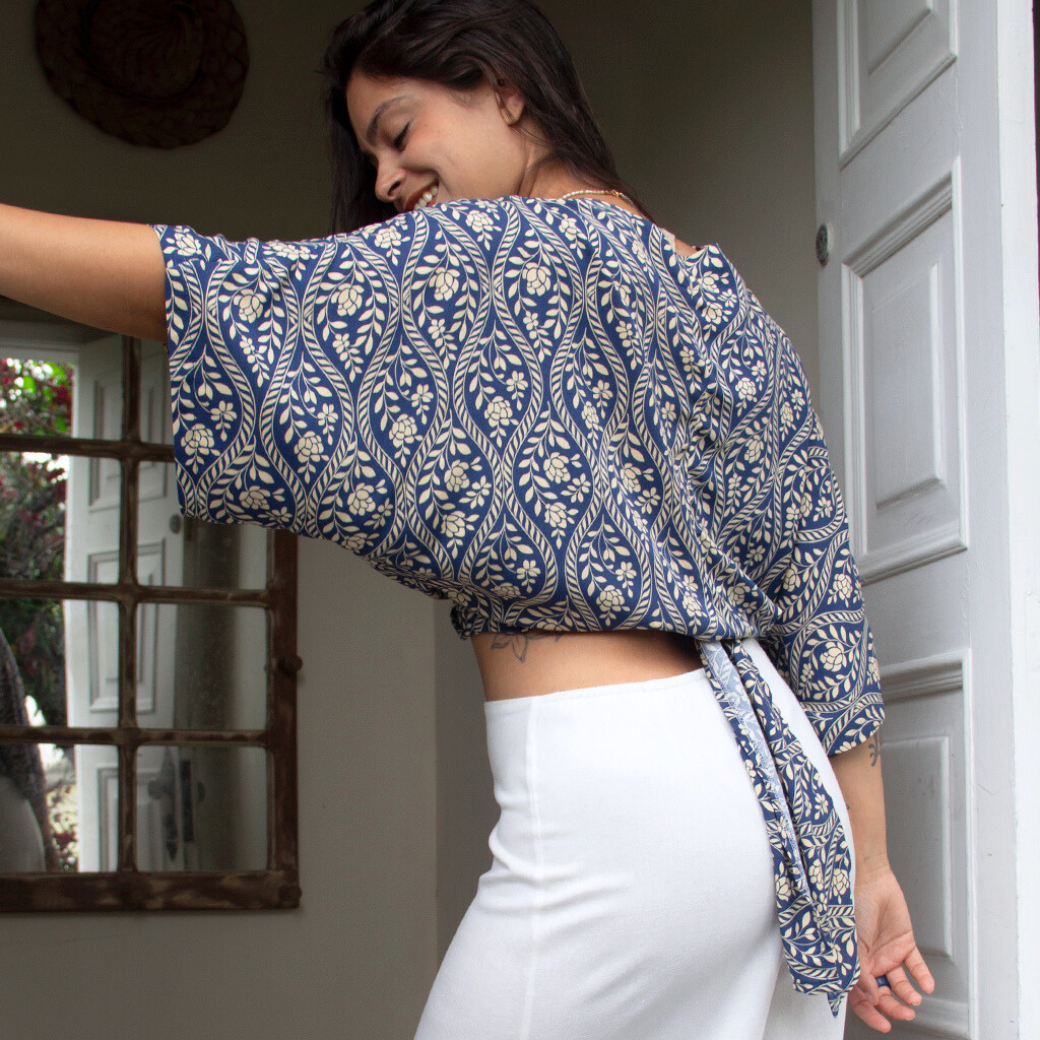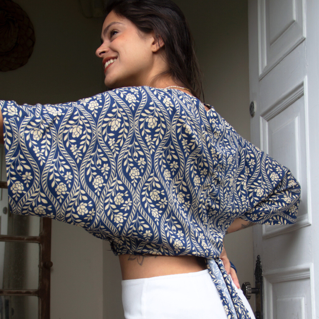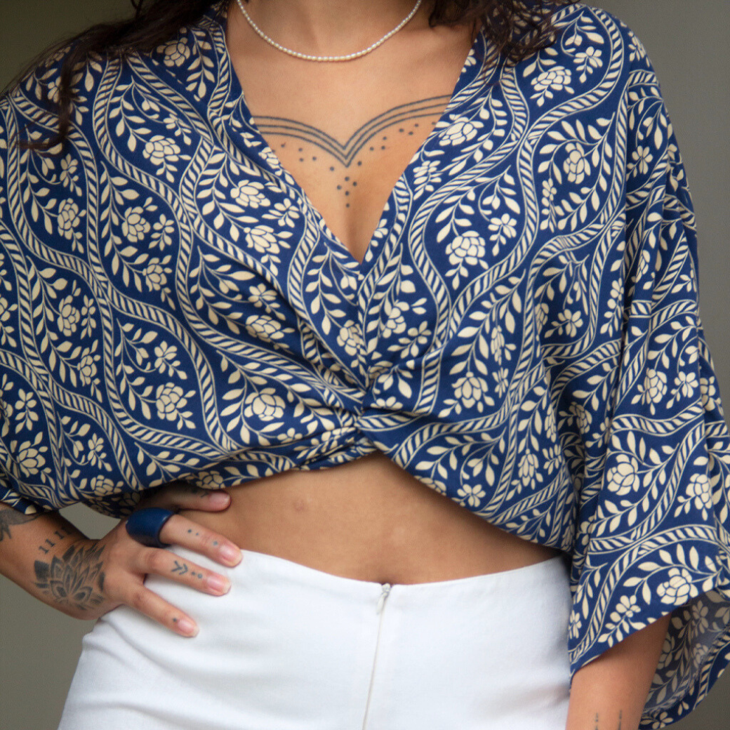 Versátil e encantadora, pode ser usada de diferentes formas: com amarrações criativas, sobreposição ou como peça única.