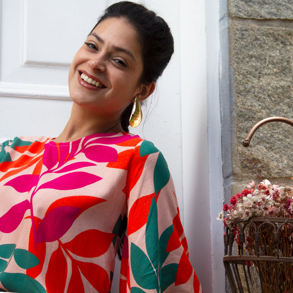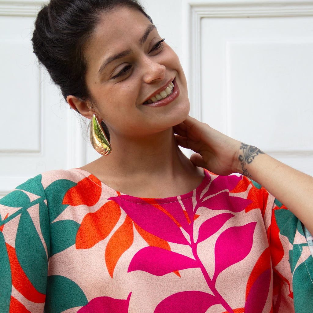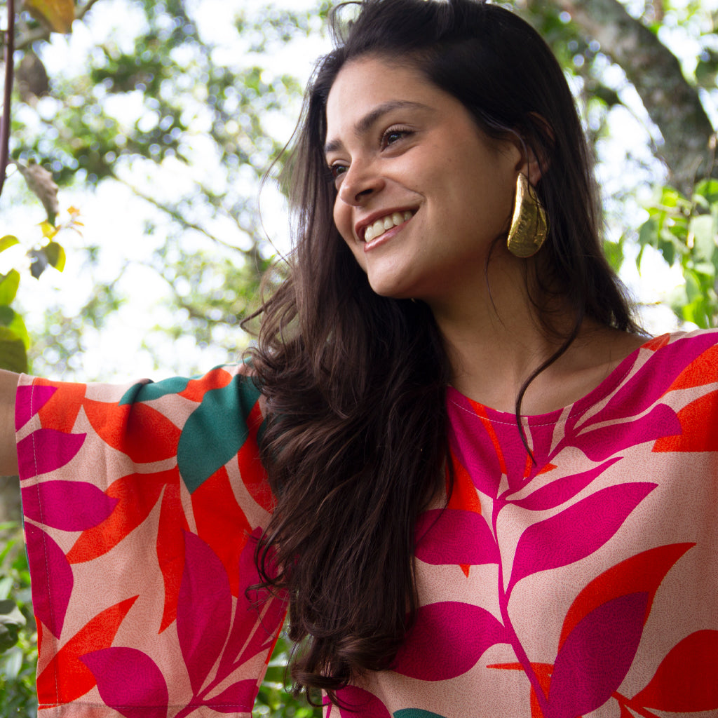 Produzido em viscolinho estampado com toque macio e caimento refinado.